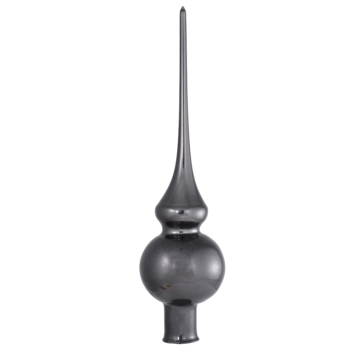 Standing 10.5 inches (267 mm) tall, this refined finial features a smooth charcoal-gray glass finish that shimmers softly under Christmas lights, lending a modern yet classic charm to any holiday tree. Its sleek silhouette and understated color palette make it a versatile choice that complements both contemporary and vintage themes.