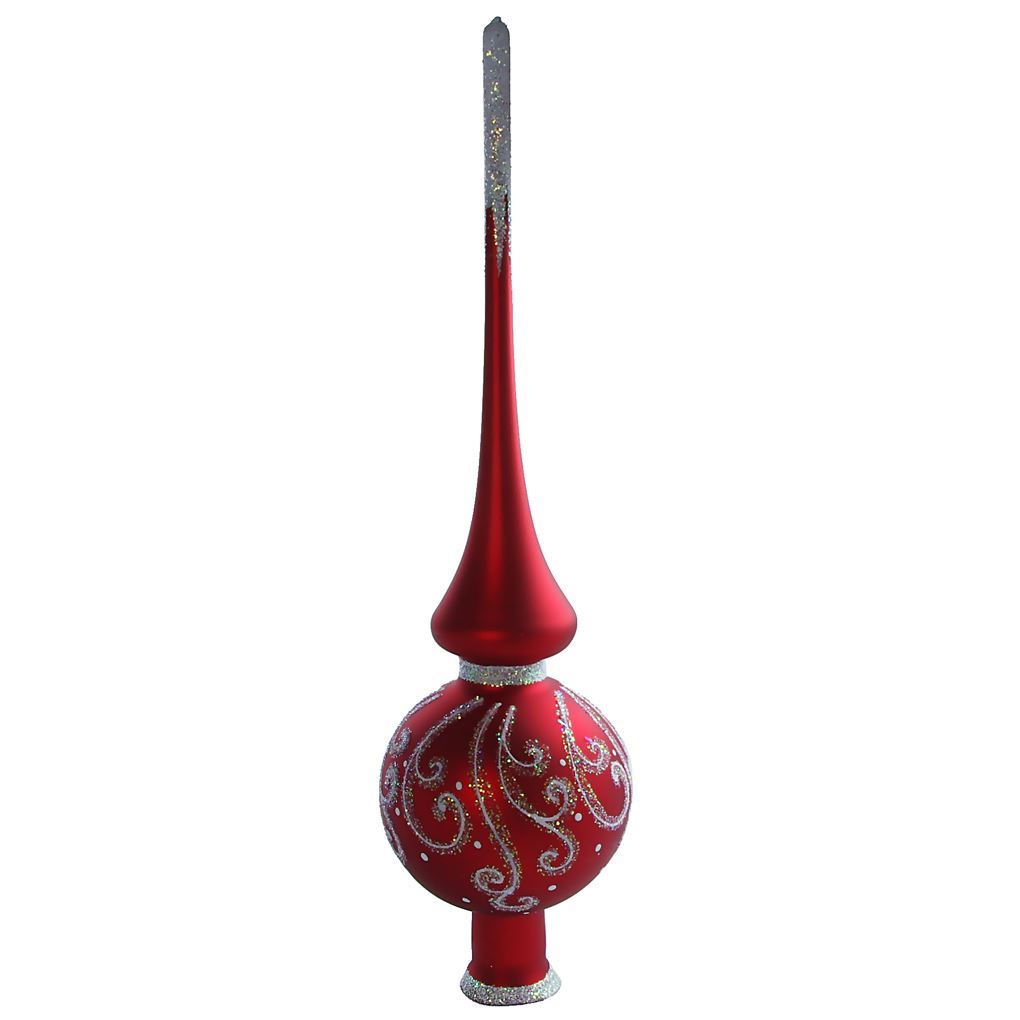 Snowy Pattern Red Matte Hand Blown Glass Christmas Tree Topper